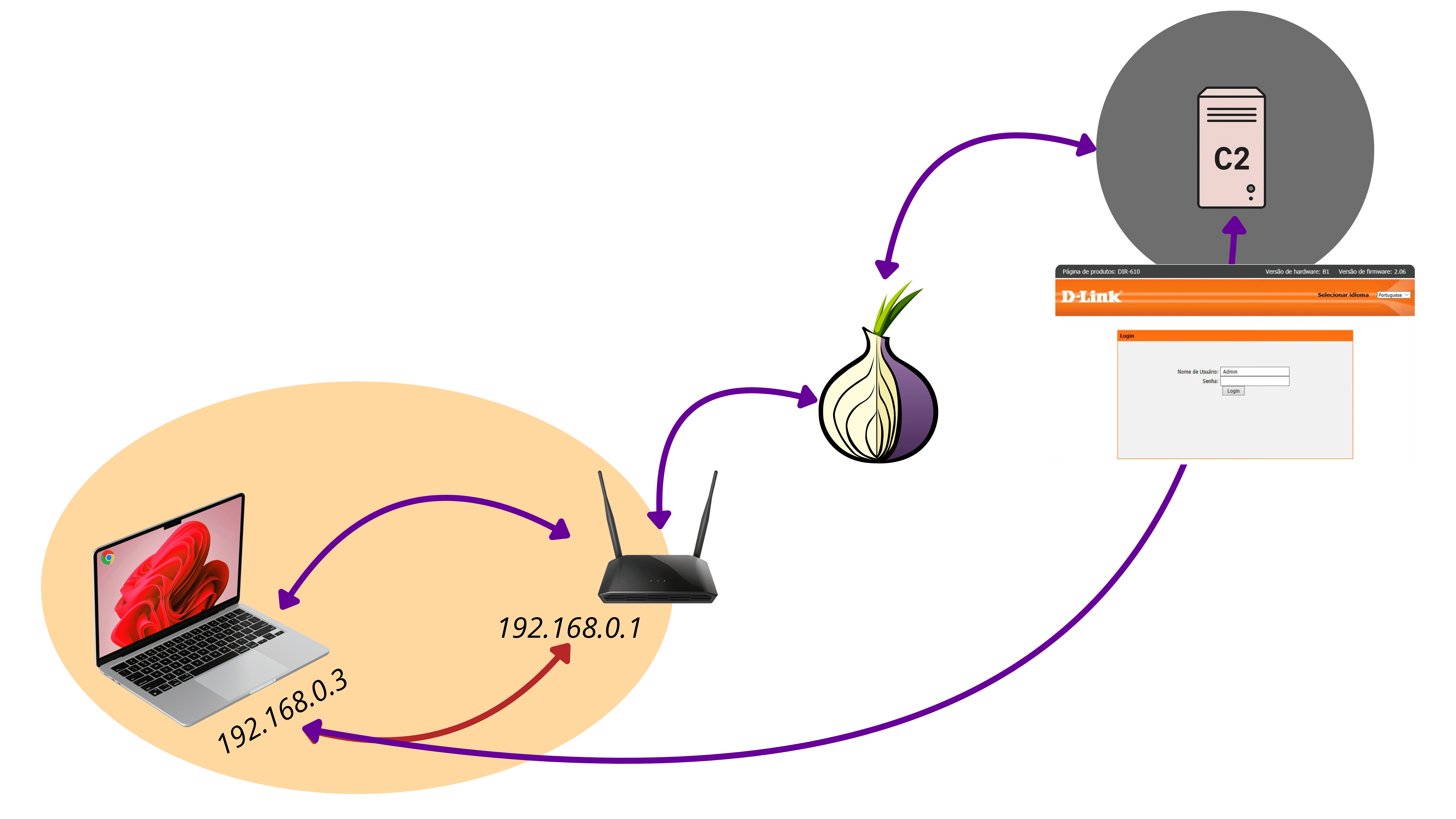 Do ponto de vista de segurança ofensiva, foram exploradas técnicas que viabilizam o acesso ao painel administrativo do roteador de forma remota, mesmo quando ele está protegido por uma camada NAT ou firewall. Esse tipo de acesso não ocorre diretamente de fora da rede, mas sim a partir de um dispositivo interno que serve como intermediário. Isso permite a visualização, controle e manipulação da interface de administração como se o operador estivesse localmente conectado.