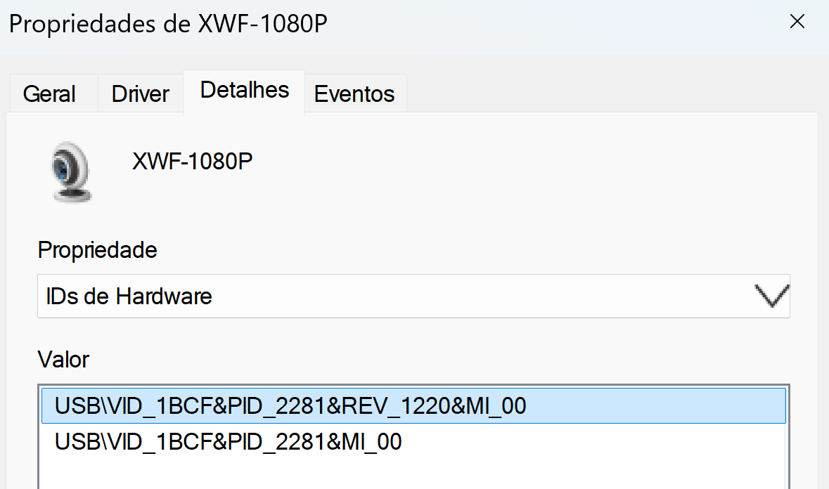 A próxima etapa é verificar se a webcam é compatível com o padrão UVC (USB Video Class). Se for, o sistema utiliza o driver genérico usbvideo.sys, sem exigir nenhuma instalação manual por parte do usuário.